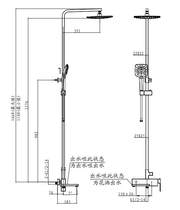 • Overhead shower, hand shower, 150CM hose: 1 set